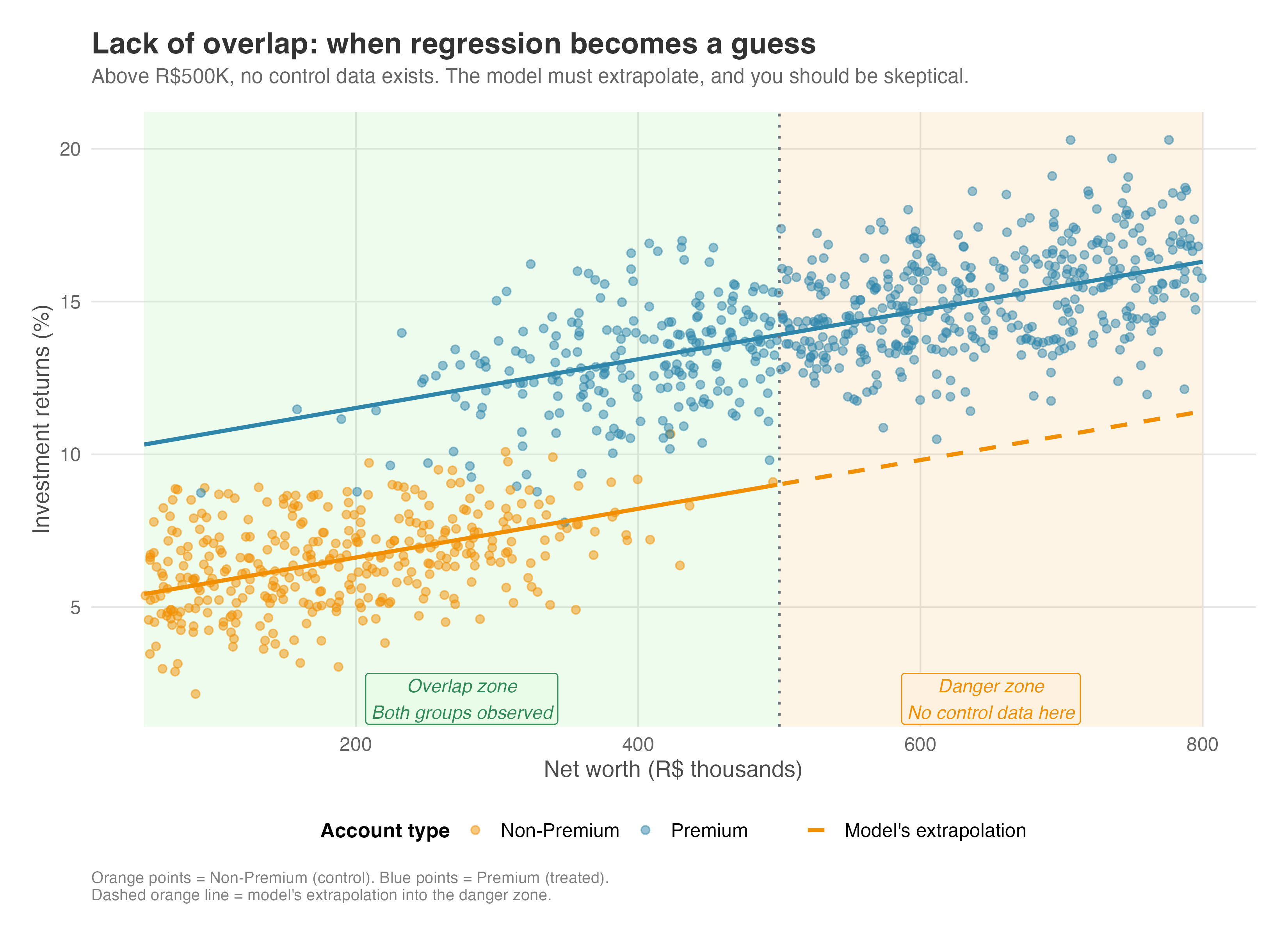 In practice, this separation is convincing. You can show a skeptical stakeholder that treated and control users have similar age distributions, income levels, and tenure — all before revealing any results. This transparency builds trust that you’re not cherry-picking a model that happens to show what you wanted.