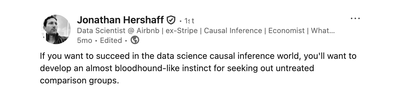 Feynman’s point applies directly here. You’ll meet plenty of data scientists who can rattle off “ATE, ATT, ITT, LATE” like a catchy acronym, yet struggle to explain what each one actually measures or when to use which. That’s knowing names, not knowing things.