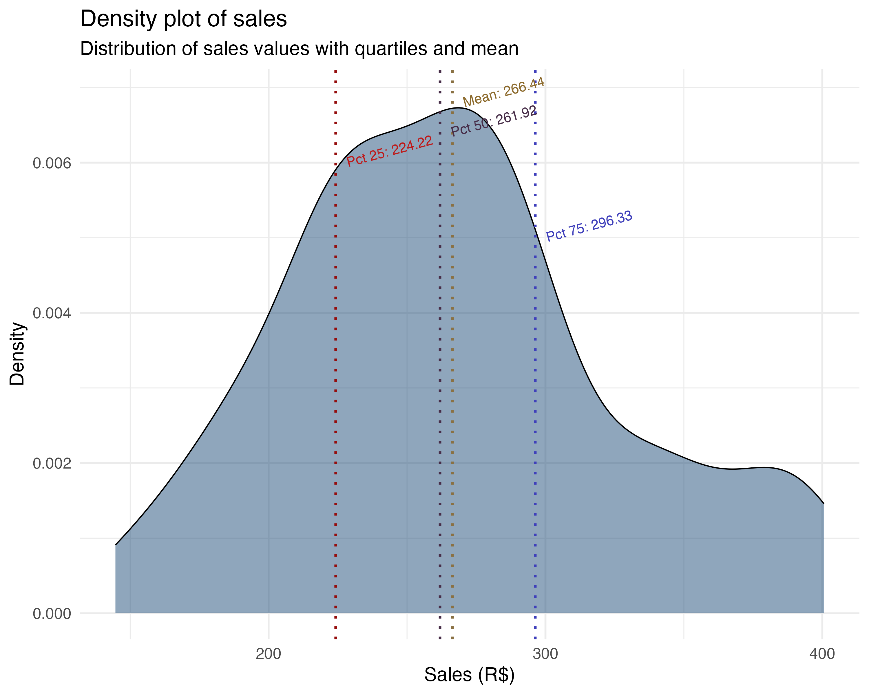 mean(df$sales[df$holiday == 0]) # R$249.03print(df[df["holiday"] == 1]["sales"].mean()) # R$309.04