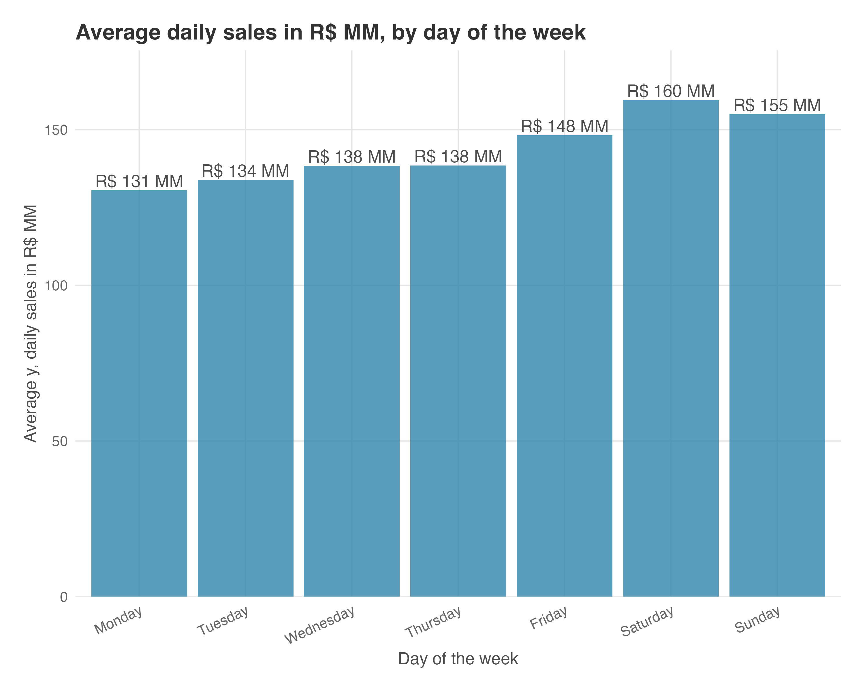https://raw.githubusercontent.com/RobsonTigre/everyday-ci/main/data/time_series_campaign.csvand replace the filenametime_series_campaign.csvwith the one you need.↩︎Figure 11.13 in the Appendix 11.A better conveys the seasonality by day of the week. There you see the higher sales on Saturdays and Sundays, and lower sales on Mondays.↩︎